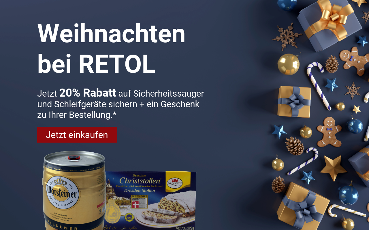 Bestellen Sie bei RETOL bequem und flexibel online und profitieren Sie bei einer telefonischen Beratung von unserem Fachwissen und unserem zuvorkommenden Service.Produkte, die nicht Ihren Erwartungen entsprechen, können Sie innerhalb von 14 Tagen nach voriger Rücksprache an uns zurücksenden – dies gilt auch für gewerbliche Kunden.